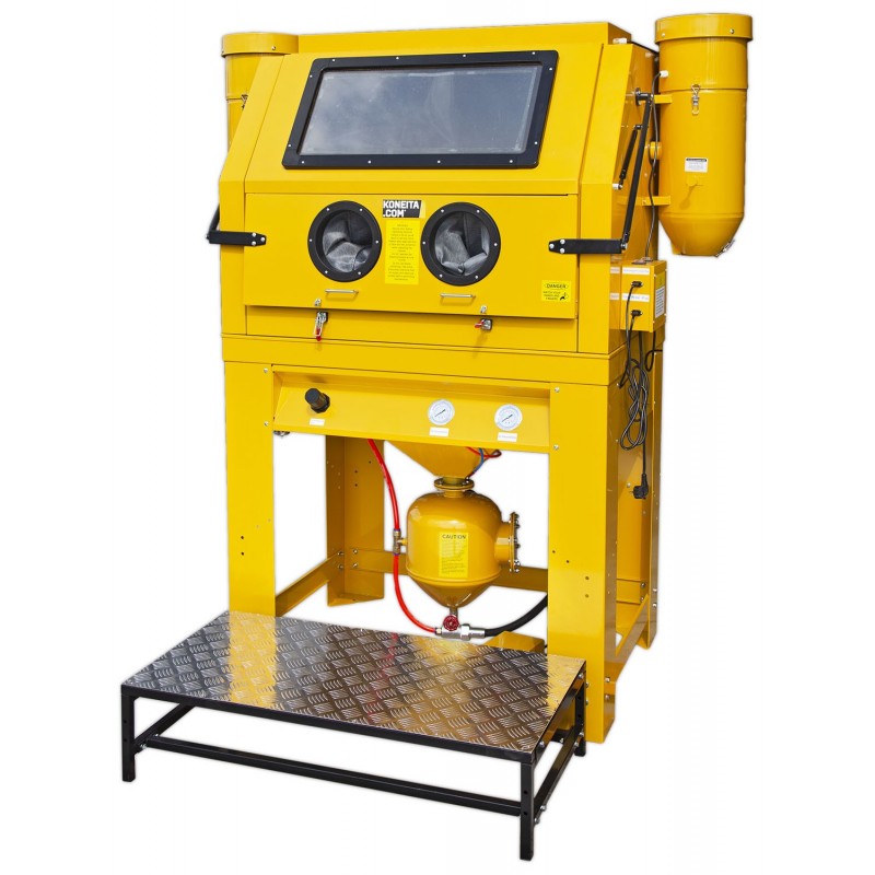 Pneumatic version of the SBC990 sandblasting cabinet. Pneumatic operation provides higher power and a more consistent media feed than a standard suction/ejector system.