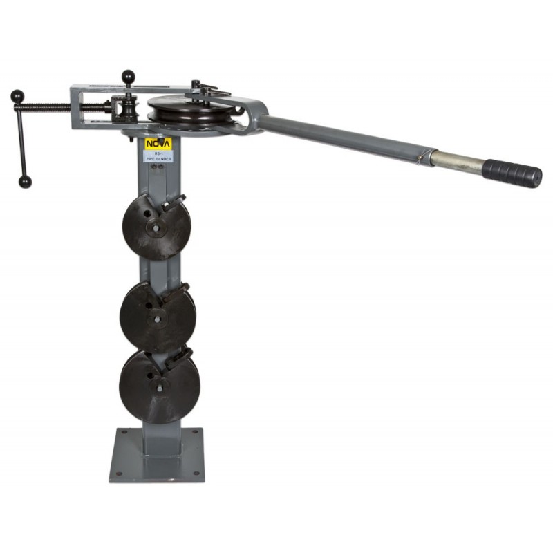 NOVA RB-1 pipe bender – a compact and robust machine for 1/2”–1” pipes. A 270° bending angle and a spare former ensure clean bends. Includes six different former sizes.