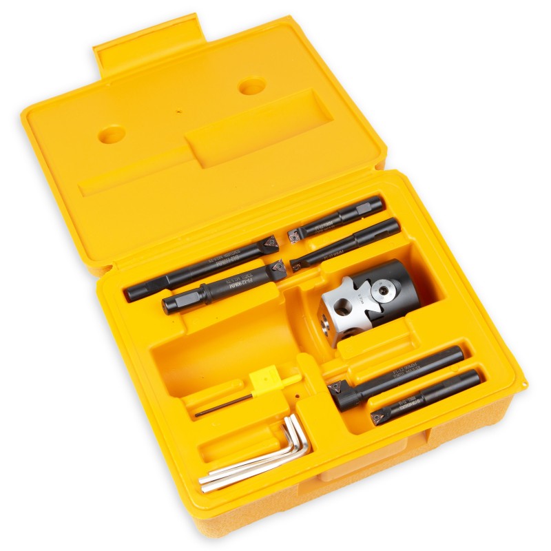 Täppis-freesipea Ø50 mm, tööulatus 10–125 mm ja peenhäälestus 0,01 mm. Maksimaalne nihe 16 mm. Komplektis on 6 terahoidjat. Kinnitusvars vali lisatarvikute alt.