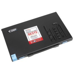 Keermeparandus komplekt Völkel. Keermemõõdud M5-M12 standartsete sammudega. Sisaldab kõiki vajalikke tööriistu. Kokku 110 keermestamiseks vajalikku elementi kõige. Kõige populaarseim sortiment keermeparanduste jaoks.