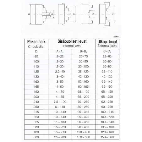 Isetsentreeriv kolmepakiline padrun 250mm.