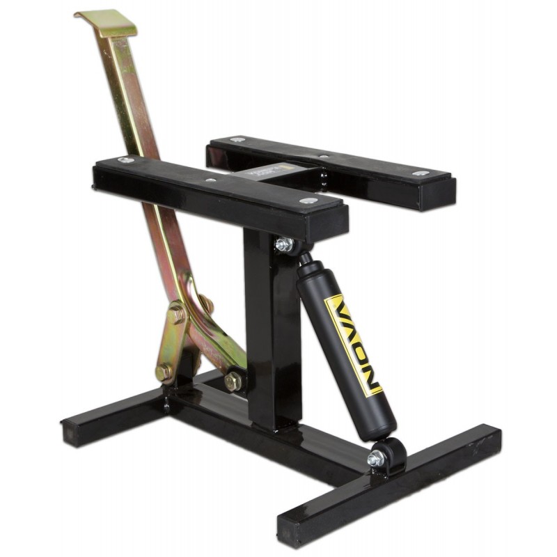 Tvirtas NOVA motokroso stovas bekelės motociklams. Kojinis pakėlimas ir kontroliuojamas nuleidimas. H formos rėmas suteikia stabilumo. Kompaktiškas ir lengvas.