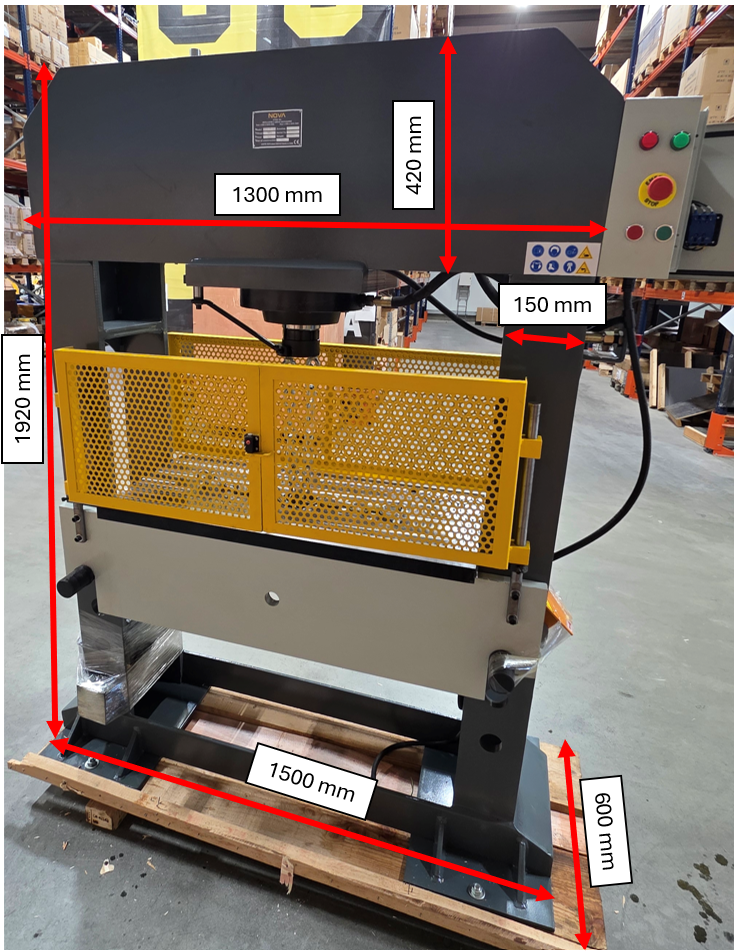 Hidrauliskā prese NOVA HP-100 ir ideāla darbam pie lielas slodzes. Kvalitatīvais modelis ar izturīgu konstrukciju ir piemērots dažādām darbnīcām un ražošanas uzņēmumiem. 100 tonnu kompresijas spēks ar 3 kW motoru. Virzuļa gājiens 250 mm. Modelim komplektācijā arī galda hidrauliskais lifts. Preses, kuras svars ir 1290 kg, galda izmērs ir 460x980 mm. Regulējams spiediens.