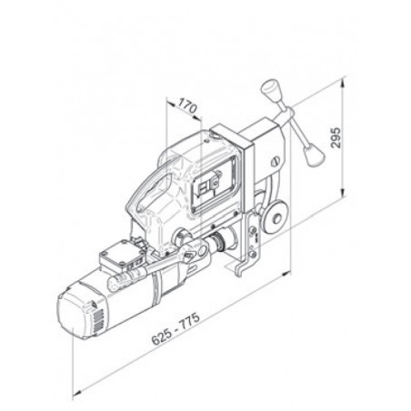 Maskinen används vid montage av jordningsskruvar, kontaktledningssystem och isolerade förbindelser. Tack vare det snabba spännsystemet kan den enkelt fästas direkt på rälsen. Trots sin robusta konstruktion väger maskinen endast 21,5 kg och utvecklar ett tryck på 1,2 ton i käften för att säkerställa stabilitet vid borrning.